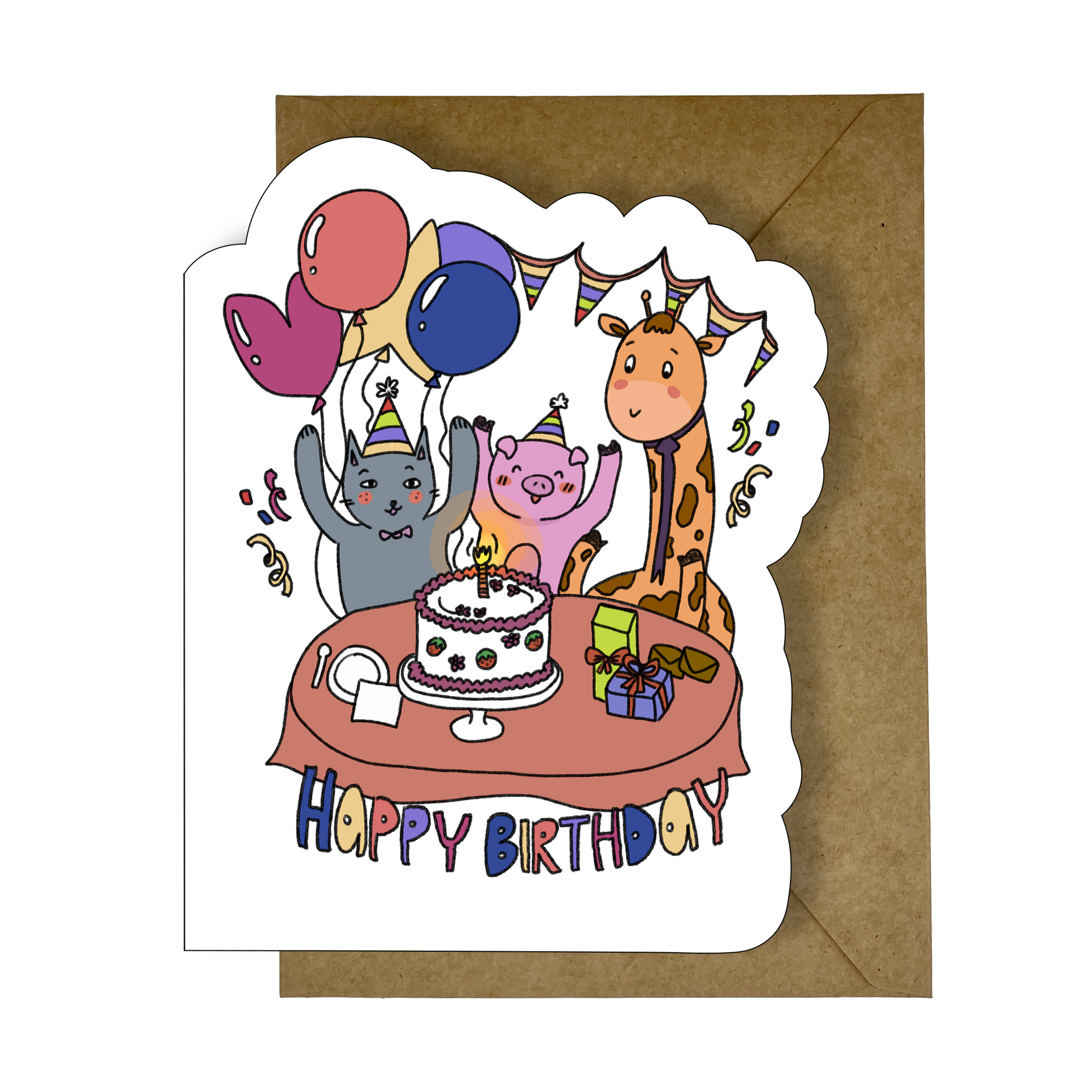 Animal Happy Birthday Card - Greeting Celebration Shape Cards - A5 Size with Envelope