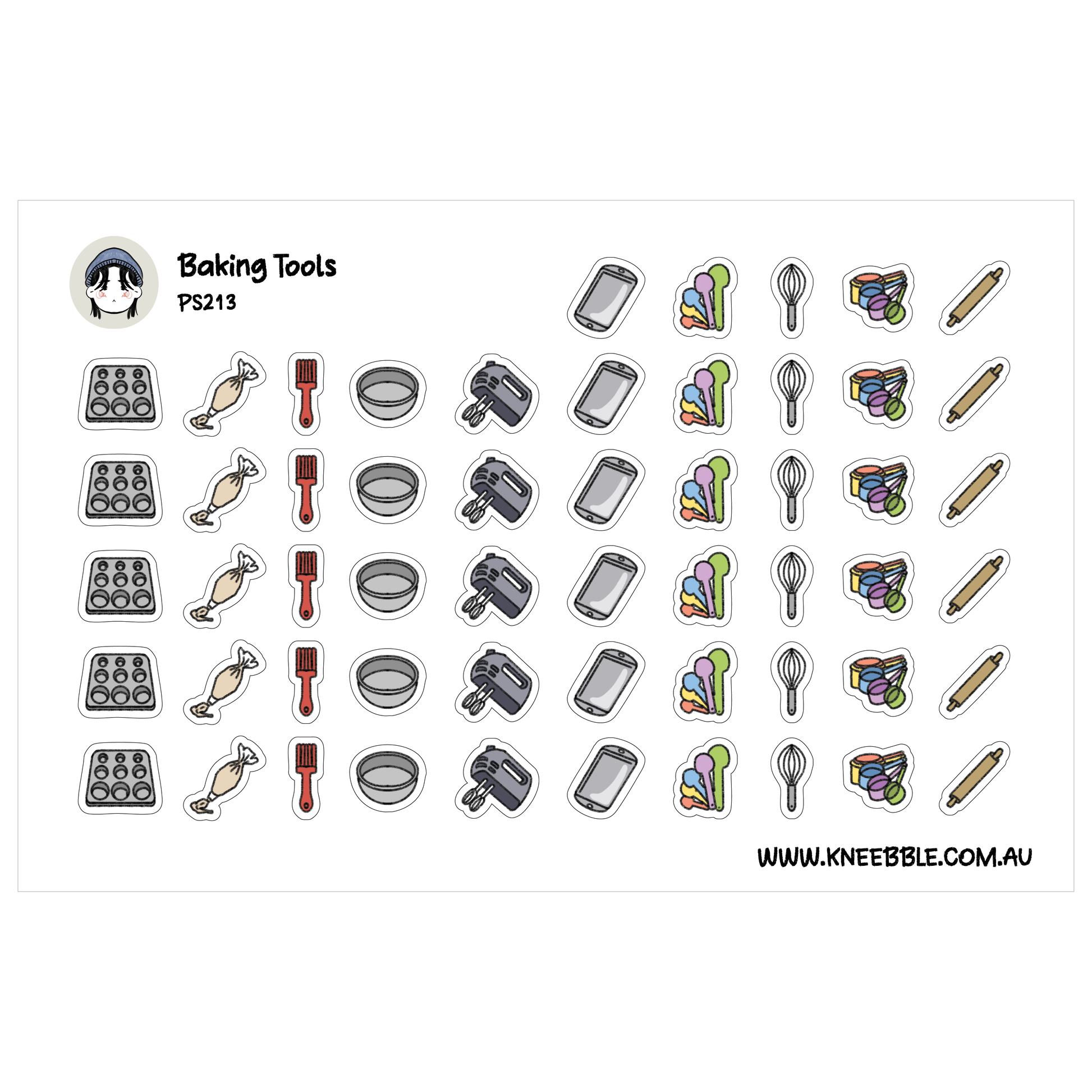 Baking Tool Icon Planner Stickers - Mixer, Bowl, Measuring Tools for Kitchen Utensil Meal Prep