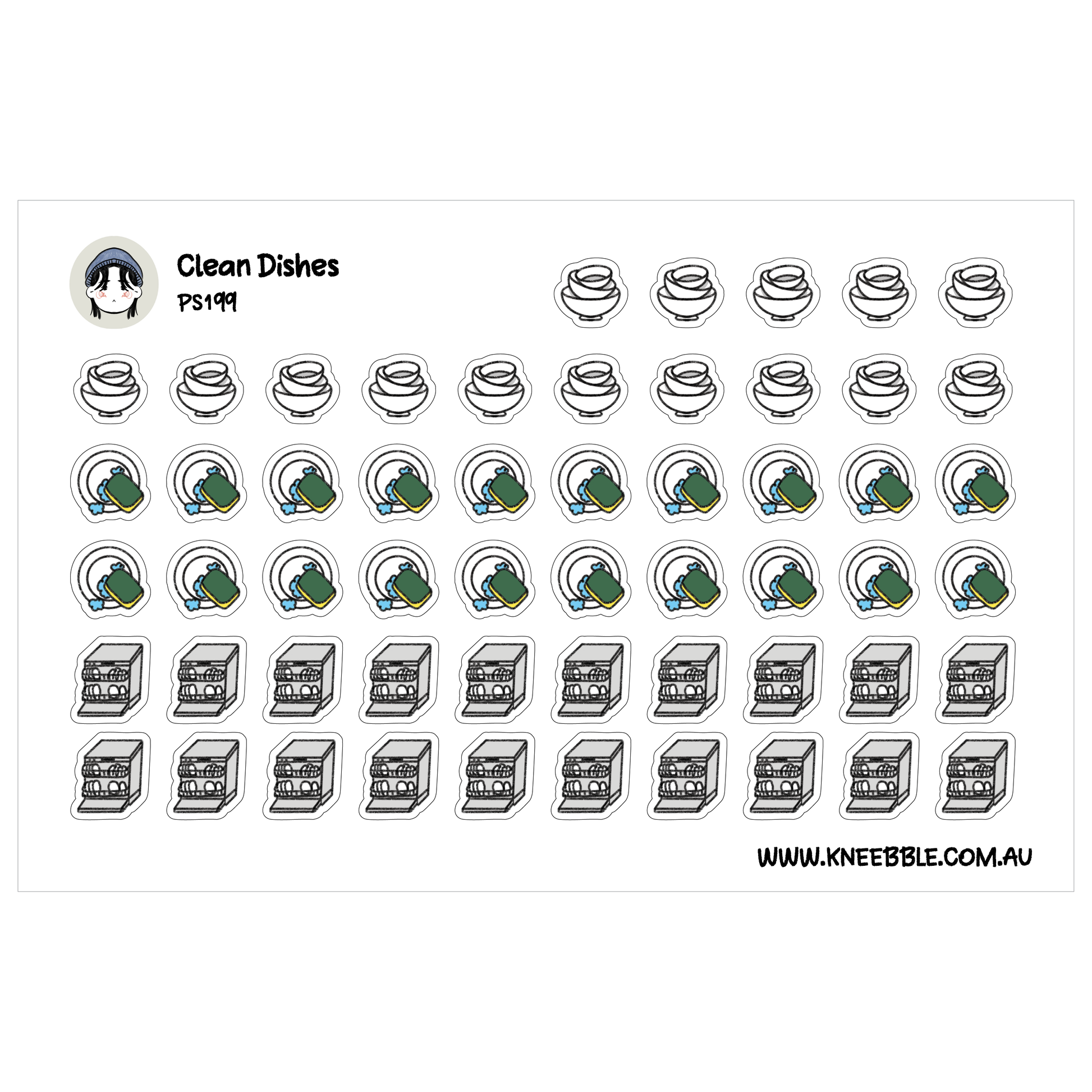 Clean Dishes Planner Stickers - Dishwashing, Sink and Kitchen Chore Stickers for Daily Planners, Journals and Cleaning Schedules