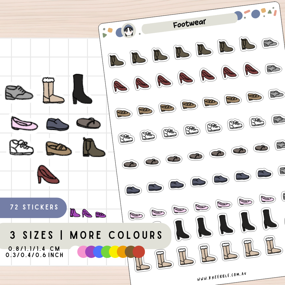 Elevate your planner game with our Footwear Shoes Planner Stickers! These vibrant stickers add a pop of fun to your planning by featuring a variety of footwear for different activities. Stay organized and stylish with these must-have stickers!