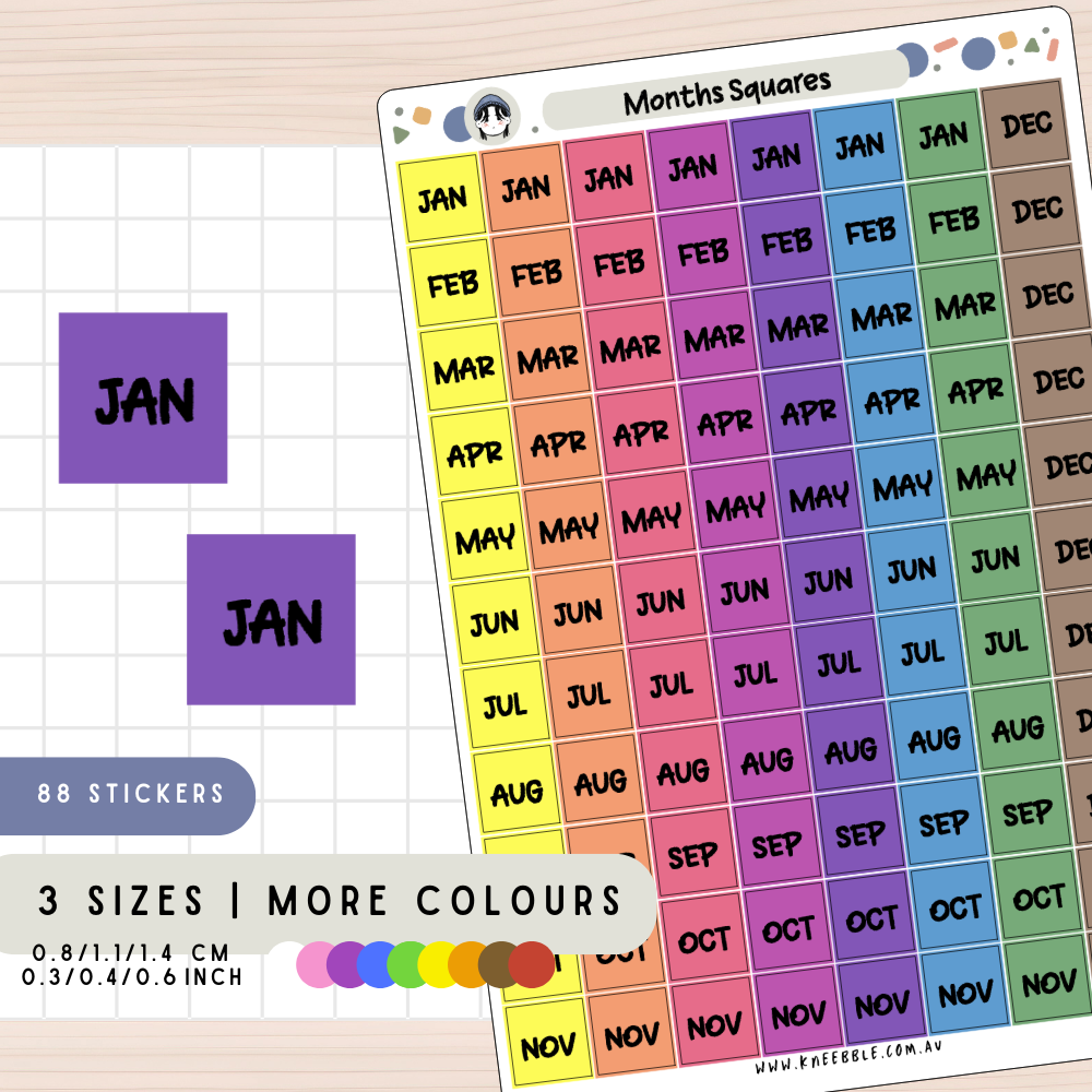 Square Months Planner Stickers
