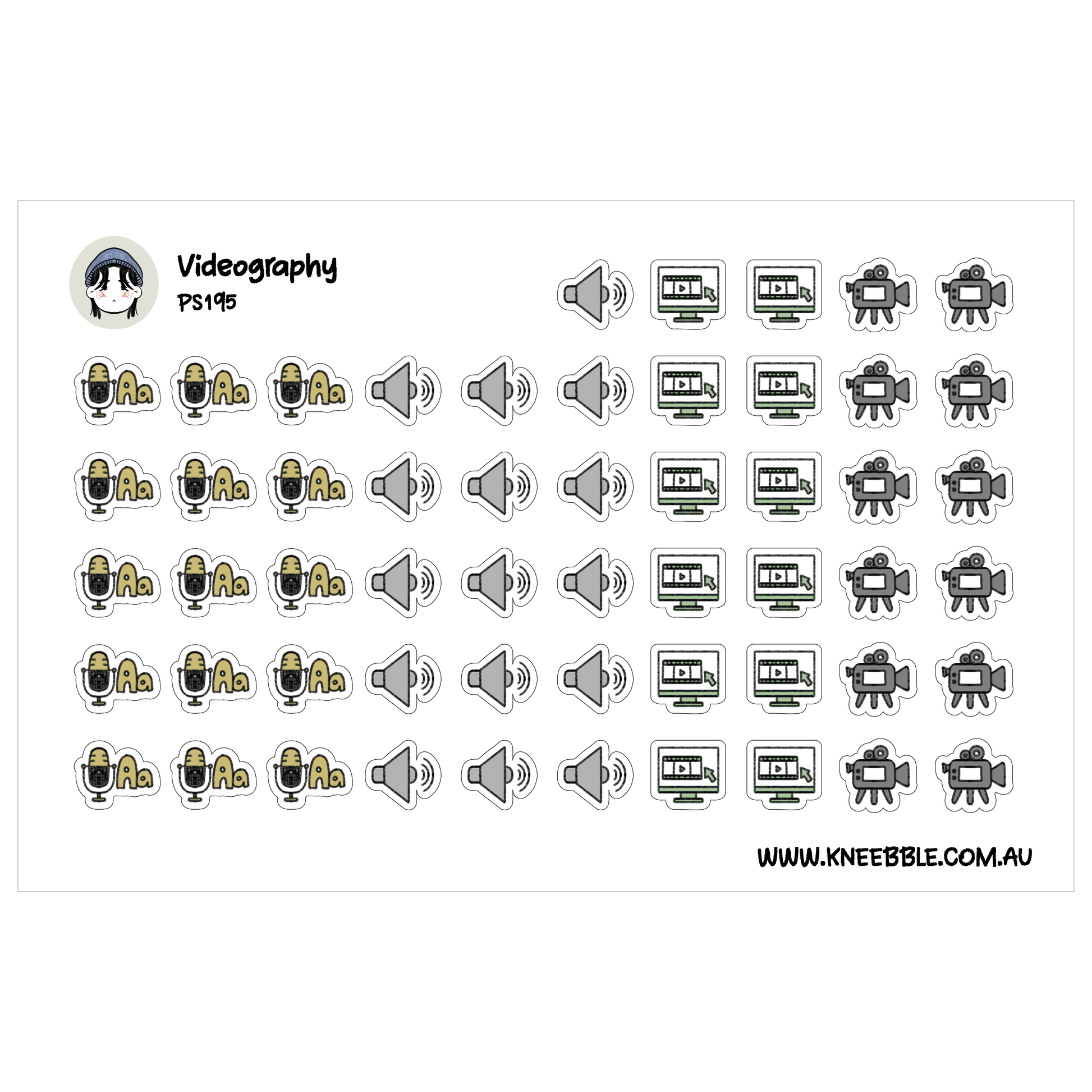 Videography Icon Planner Stickers - Filming, Audio and Editing Stickers for Content Creators, Vloggers, and Social Media Planning